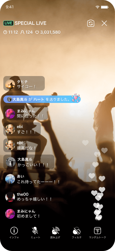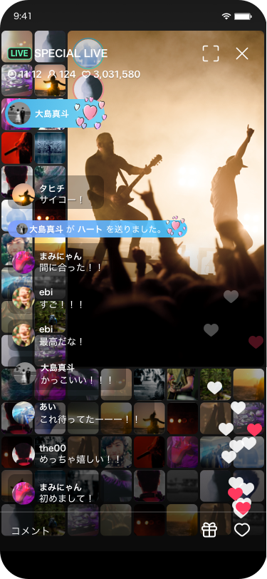 生放送やグループチャットでは有料のスーパースタンプ機能が使えます。スタンプはオリジナルのものを使うこともできます。また、この機能はON/OFFを選択できます。