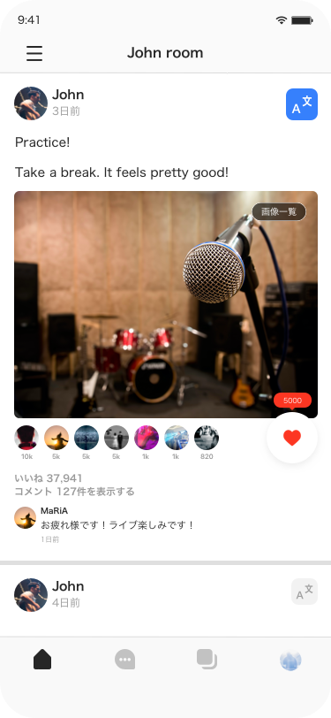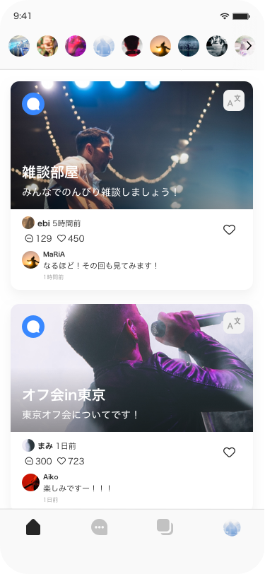 オフショット、グループチャット、スレッド機能での投稿を日本語、英語、韓国語、中国語(簡体字・繁体字)へ翻訳します。